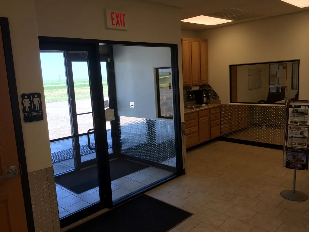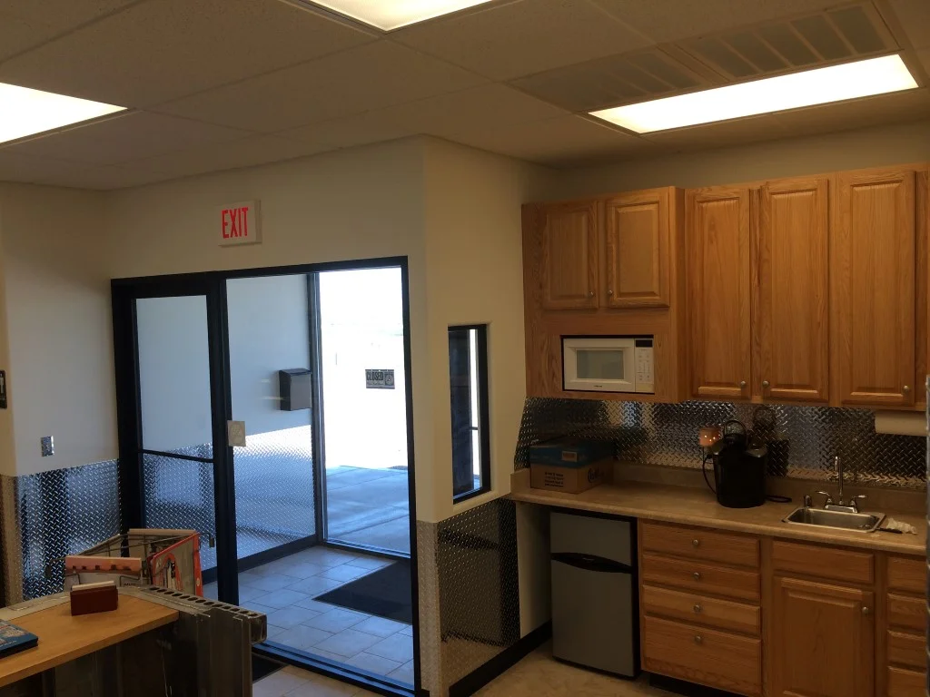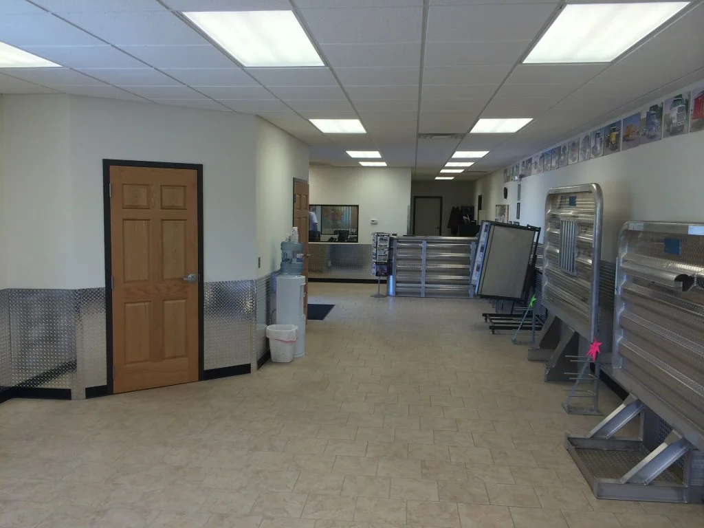 this section is set up for a service center . 1500' showroom, customer restroom, wet coffee bar w fridge, 2 large offices, PHONE SYSTEM. FAX PRINTER COPIER. parts counter. / 4500' shop, 2-75' bays. STEEL AIR LINES throughout, 10HP AIR COMPRESSOR. 2-shop restrooms 1 with shower, 1 with toilet & urinal, 1 WASHROOM with deep sink , 2-14'6"T X 14'W & 1-13'TX14'W DOORS WITH OPENERS./ 2000' parts storage. ALL NEW EVERYTHING.