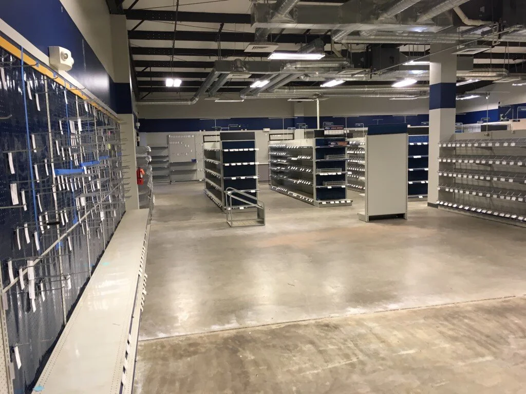 5000’ showroom, office, break room, ADA restrooms. 8000’ warehouse, automated lighting. Large overhead door. This section is in near new condition, including high efficiency HVAC. Counters, desk, storage & display racking included. There is also a fenced in storage area out back for larger inventory storage.
